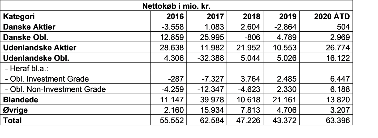 Med et samlet nettokøb på 63,4 mia. kroner i årets første syv måneder nærmer 2020 sig et rekordår for private investorers investering i danske investeringsfonde. Beløbet overstiger det seneste toppunkt i 2017, og man skal helt tilbage til 2005 for at finde et større nettokøb opgjort på årsbasis. Juli måneds køb af danske investeringsfonde på 4 mia. kroner ligger på niveau med de tre foregående måneder.