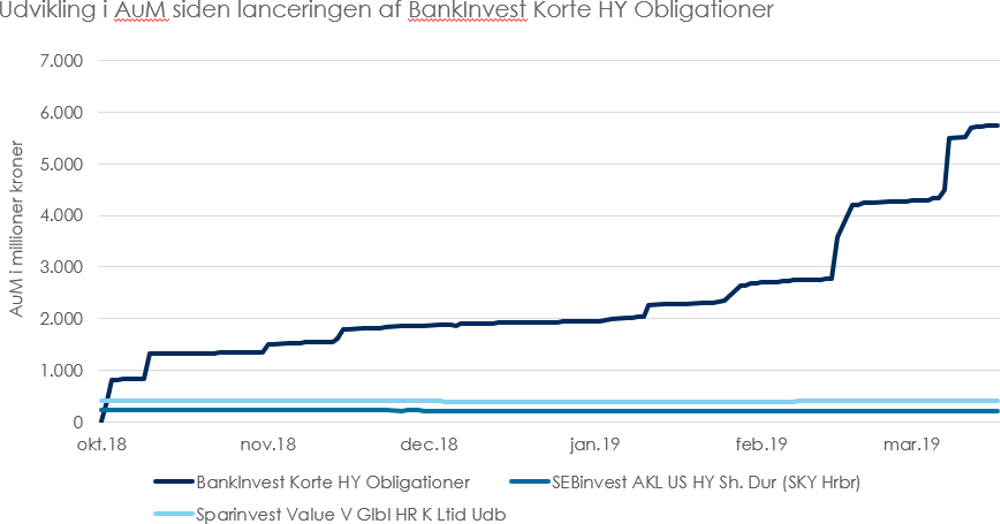 Udvikling i AuM siden lanceringen af BankInvest Korte HY Obligationer