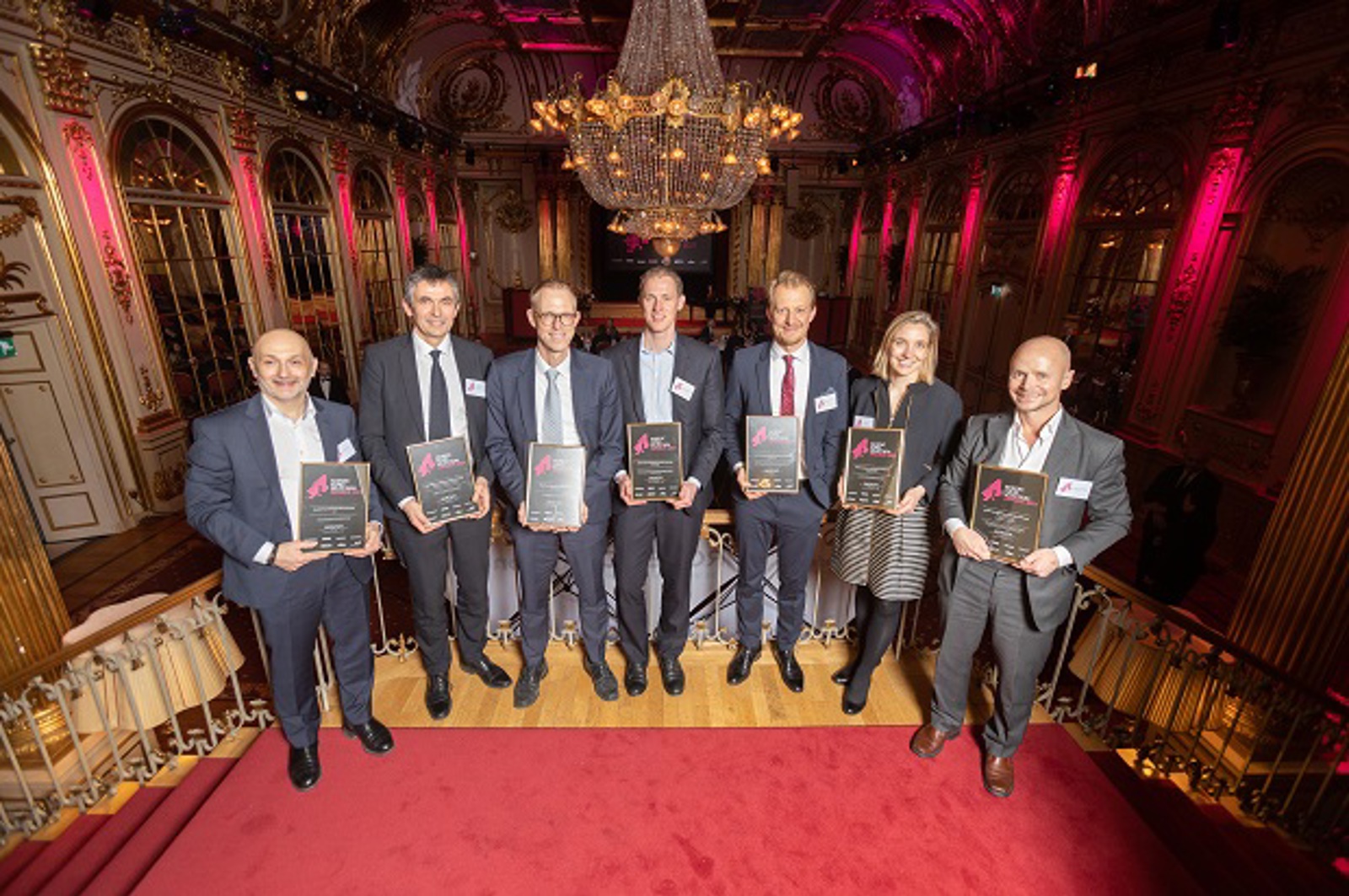 Jakob Møller Petersen, i midten, sammen med de øvrige vindere ved Nordic Fund Selection Awards 2021